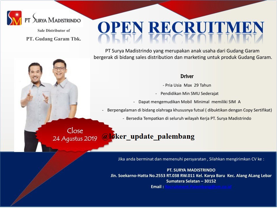 Mari bergabung bersama followers twitter baru kami @gudangloker_com atau di instagram @gudangloker untuk update lowongan. Pt surya madistrindo merupakan salah satu anak perusahaan pt gudang garam tbk yang merupakan produsen rokok terpenting di indonesia yang berdiri mulai sejak 1958, kami menghasilkan beragam type product rokok berkwalitas yang telah menyebar luas di indonesia ataupun didunia. Gudang garam tbk yang adalah produsen rokok terpenting di indonesia yang berdiri mulai sejak 1958. In 2009, sm became the sole distributor which holds control over all distribution and field marketing strategies nationwide. Candidate must be bachelors degree (s1), in all major from reputable university.